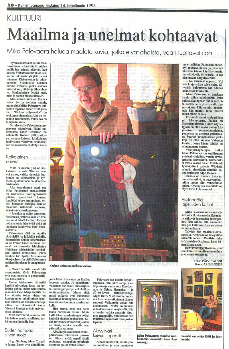 Lehtileikkeitä - "Kymen sanomat" 14.2.1995
